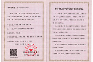 公司資質(zhì)證件齊全。目前擁有電力工程施工總承包叁級資質(zhì)、四級承裝(修、試)電力設施許可證。